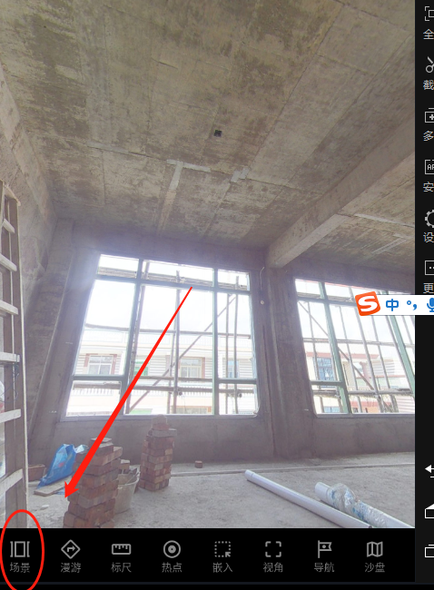 第一次上傳有限制,無法全部上傳!第一批照片上傳后,進入編輯全景狀態(tài),如下圖: 可以看到截圖中,有個圈圈,菜單是...