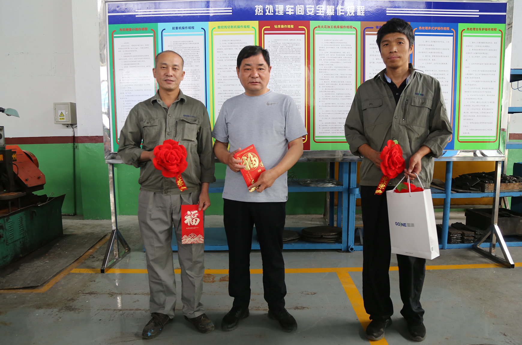 董事長劉運智先生與生產(chǎn)標桿現(xiàn)場第一戰(zhàn)役“4人小組”在“國源文化一條街”合影。劉董要求全公司各級管理干部和全體員工,要向受到表彰獎勵的各類現(xiàn)場標兵和標桿車間學習。更希望受到表彰獎勵的各類標兵和標桿車間要珍惜公司給予的榮譽、給予的認可、給予的尊重、給予的獎勵,要戒驕戒躁、再接再厲、再創(chuàng)高標準、高精益、高質(zhì)量、高精度、高看點的品牌現(xiàn)場,為奪取六月份標桿現(xiàn)場榮譽的多連冠、標兵的多連冠、獎金的多連冠而加油、加力、加快拼搏實干吧!